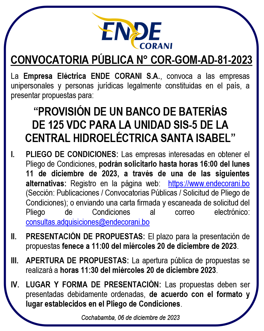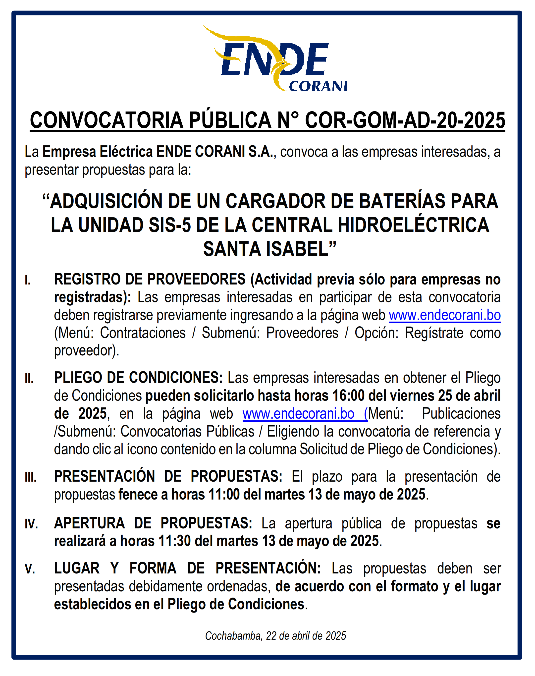 LAS CENTRALES CORANI, SANTA ISABEL,