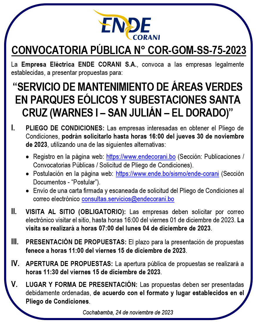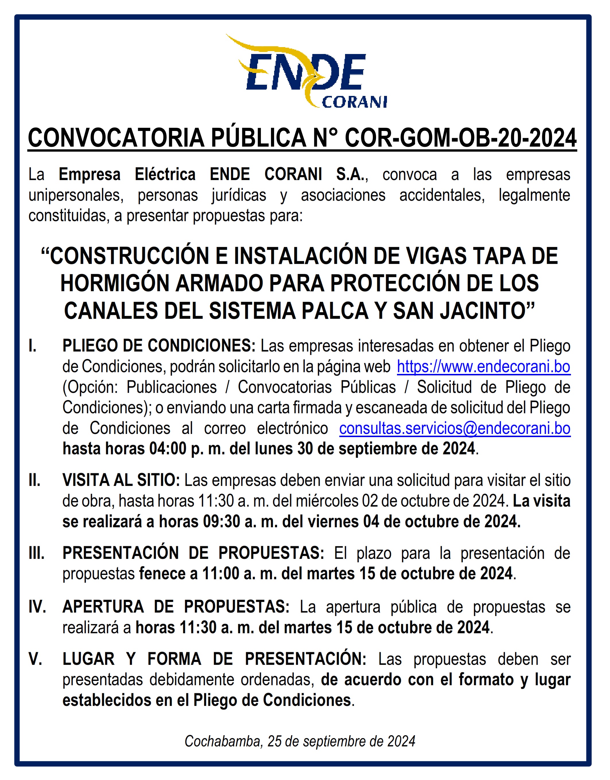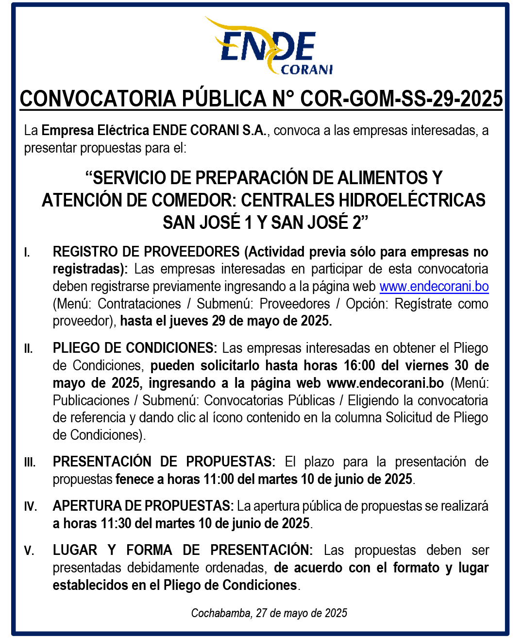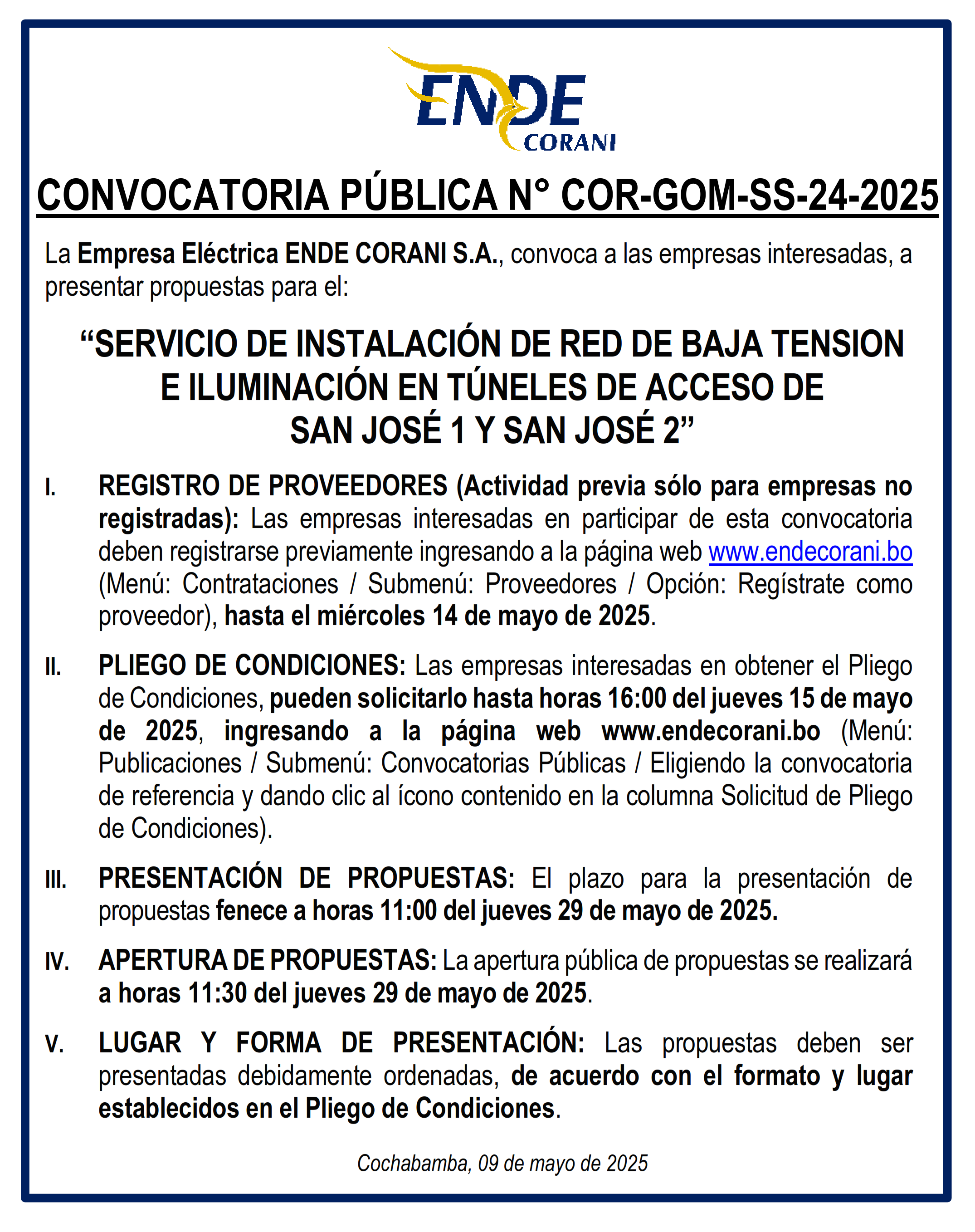 LAS CENTRALES CORANI, SAN JOSÉ 1,
