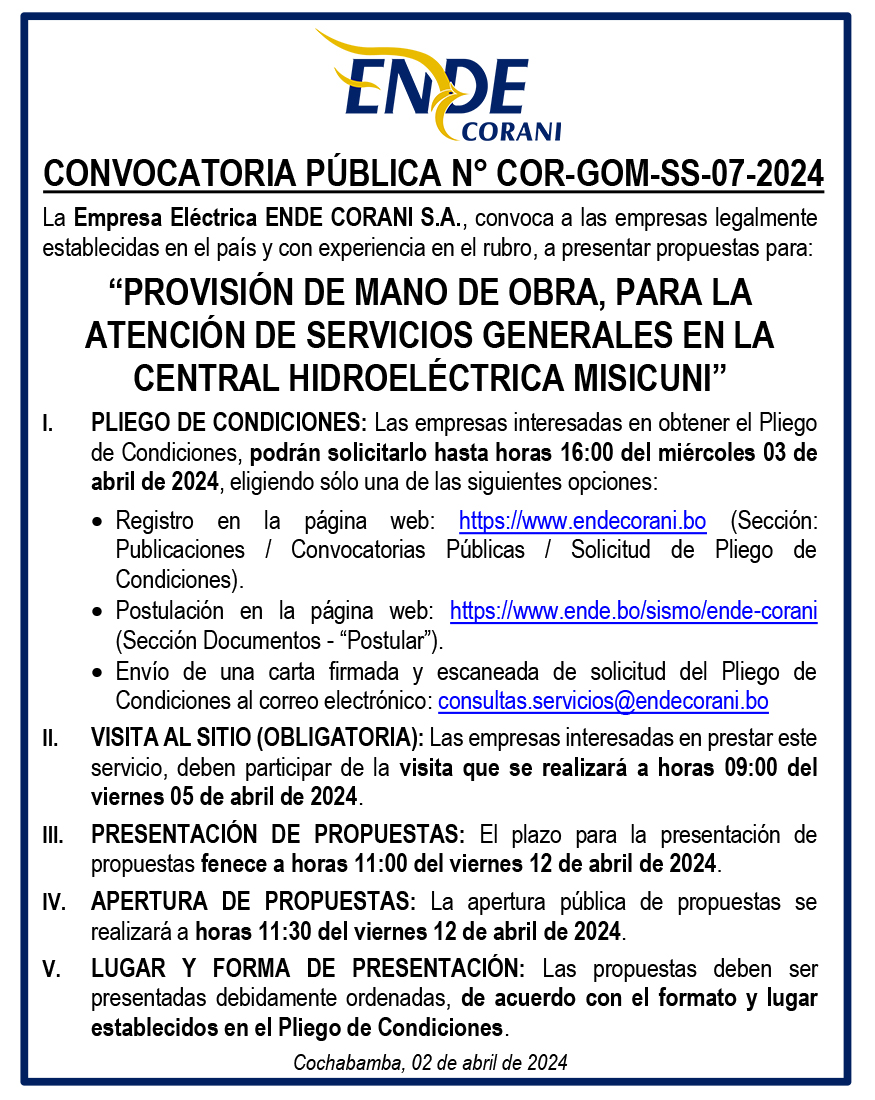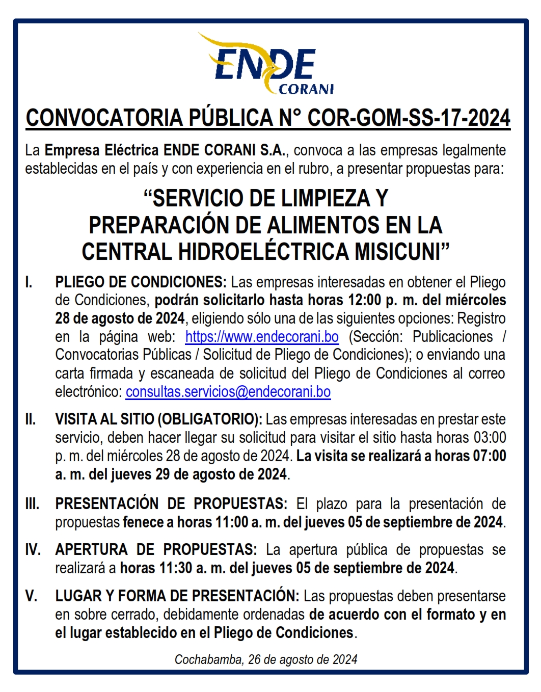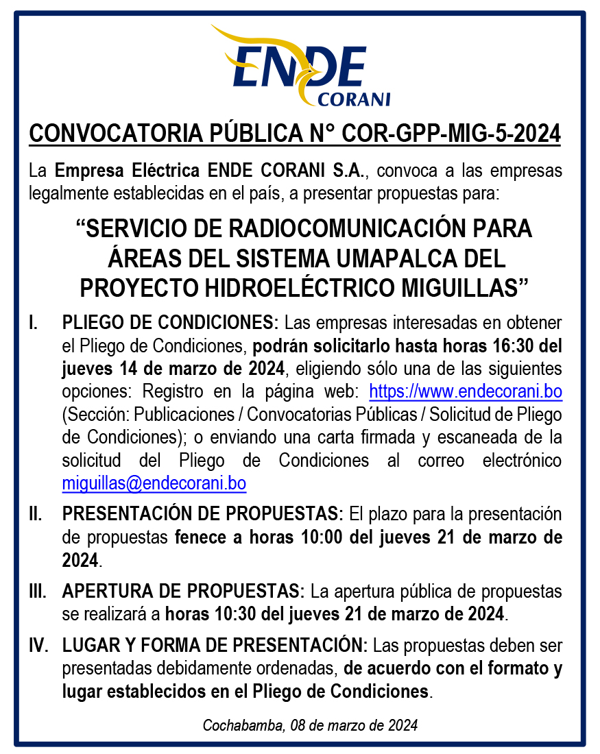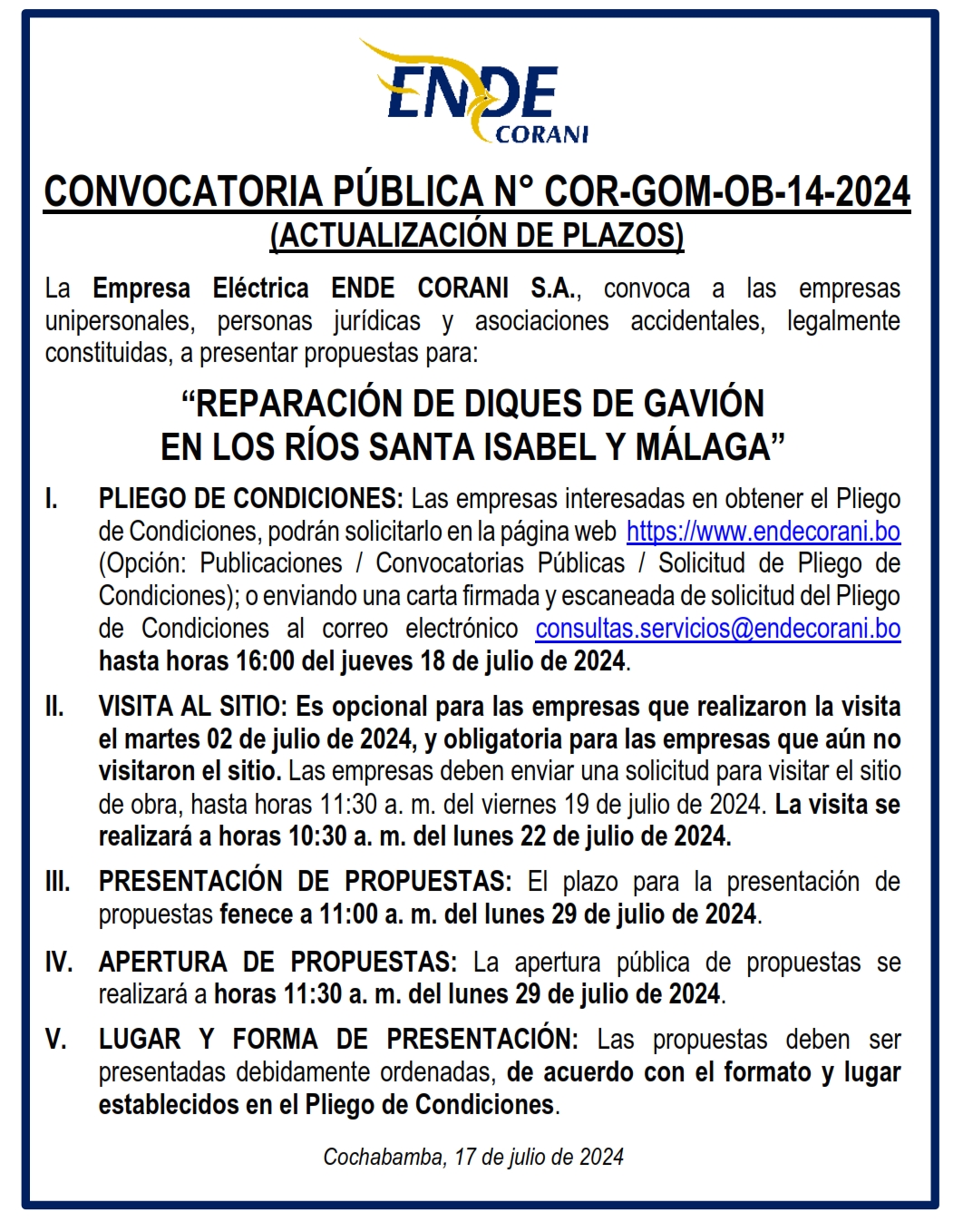 DE LA CENTRAL HIDROELÉCTRICA CORANI"