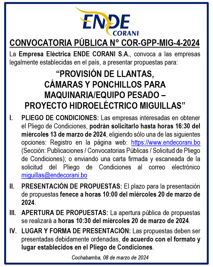 Y VÍVERES DESDE LA CIDAD DE COCHABAMBA, HASTA