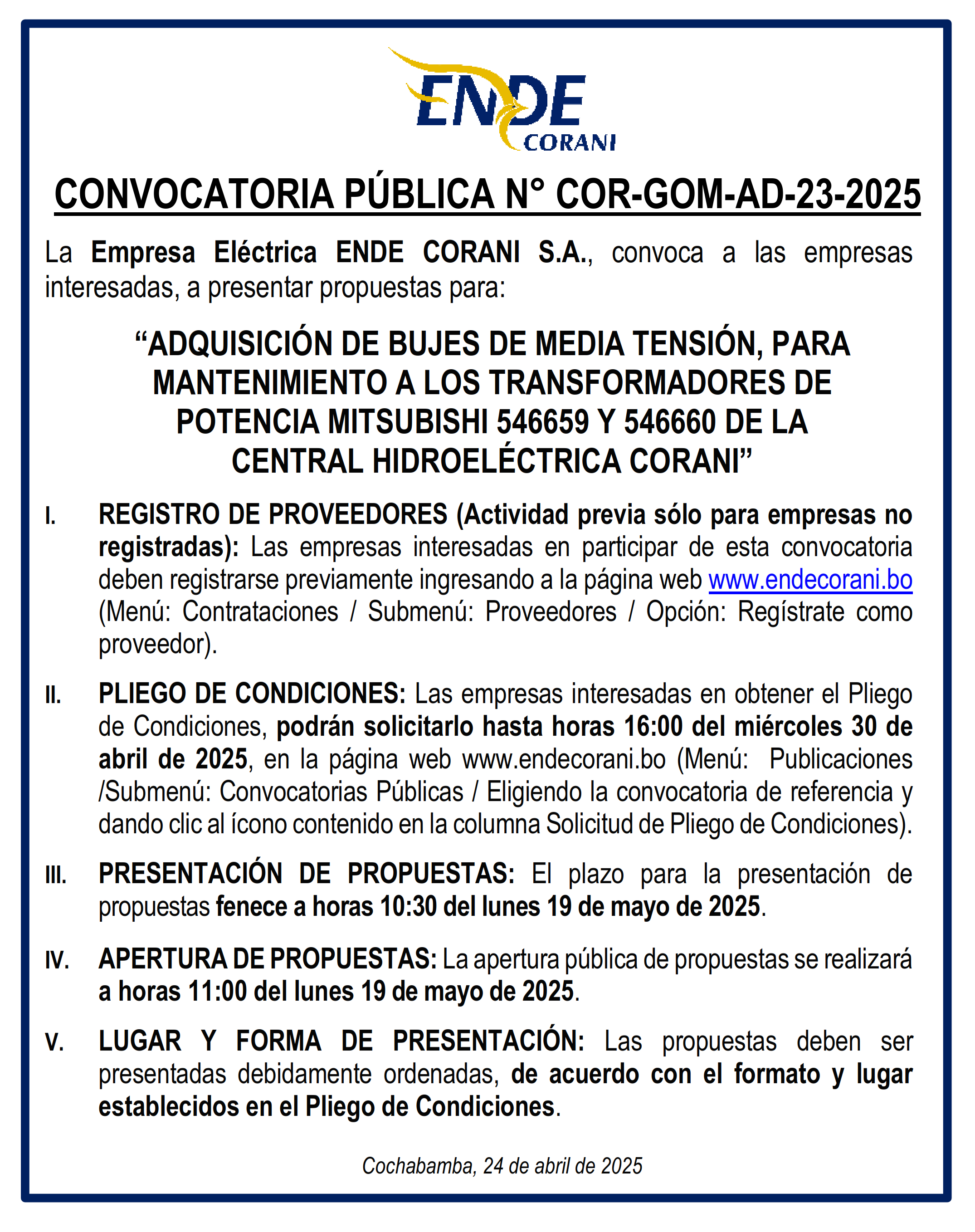 "ADQUISICIÓN DE BUJES DE MEDIA TENSIÓN, PARA